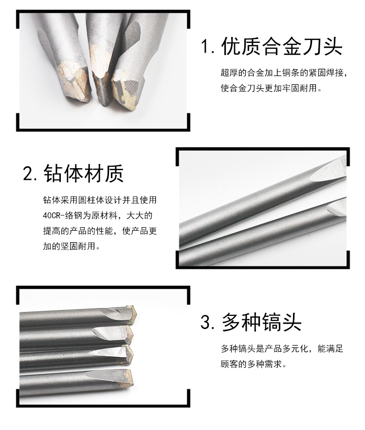 钨钢十字电锤钻头钨钢合金冲击钻混凝土钢筋穿墙方柄圆柄四刃钻头